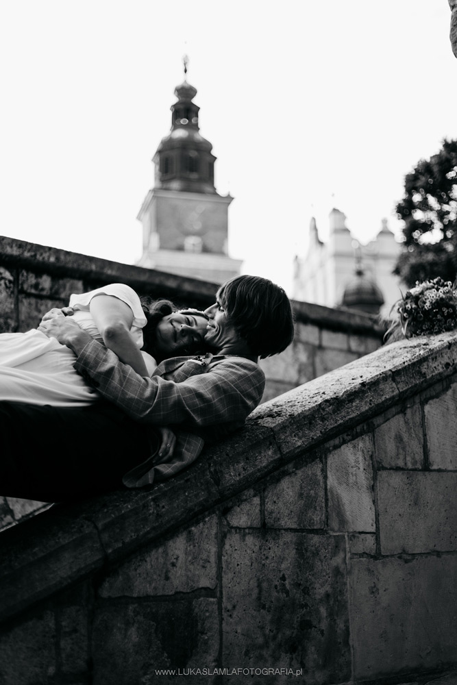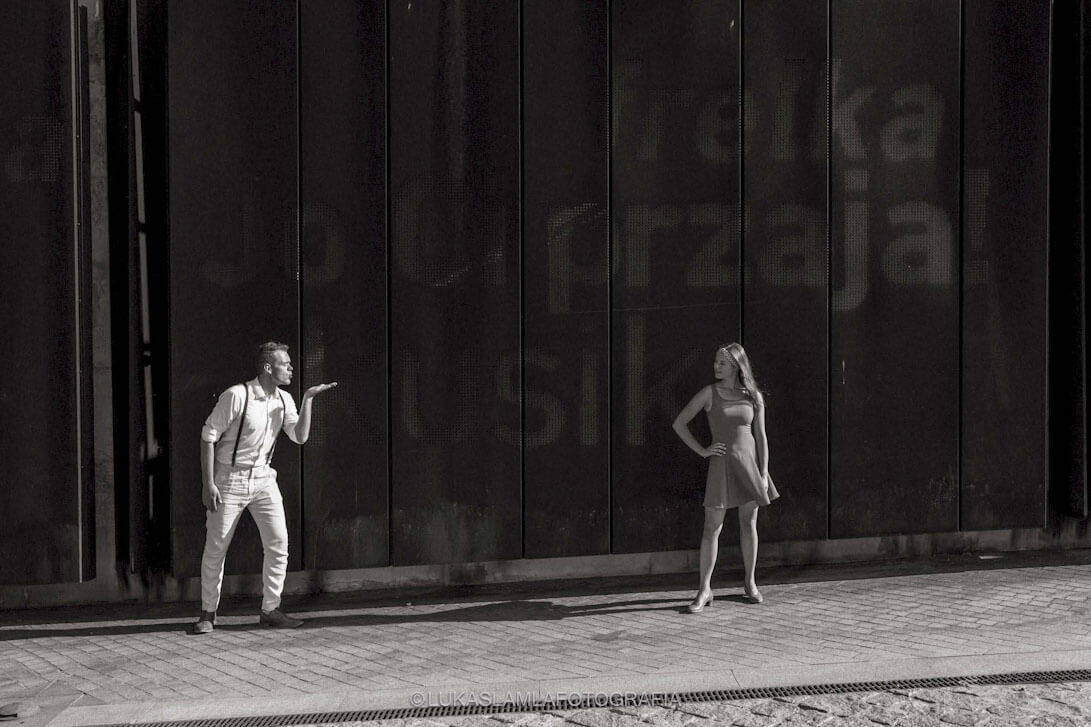 Nazywam ją „sesją miłosną” i zachęcam parę do myślenia o niej, jak o randce. Jeśli to tylko możliwe, daję przestrzeń do intymności. Niechętnie ustawiam zakochanych (w nienaturalnych dla nich pozach). Wolę autentyzm i przy ogólnych podpowiedziach stawiam na ich naturalną inwencję która wynika energii w tej danej dla nich chwili. Zależy mi by właśnie to zapamiętali oglądając po latach zdjęcia: że „coś” działo się między nimi a relację z tego widzą na zdjęciach. Przyznaję, że wymaga to zaangażowania od wszystkich, ale tylko wtedy zdjęcia mają treść. Nie są sztucznie ustawione.